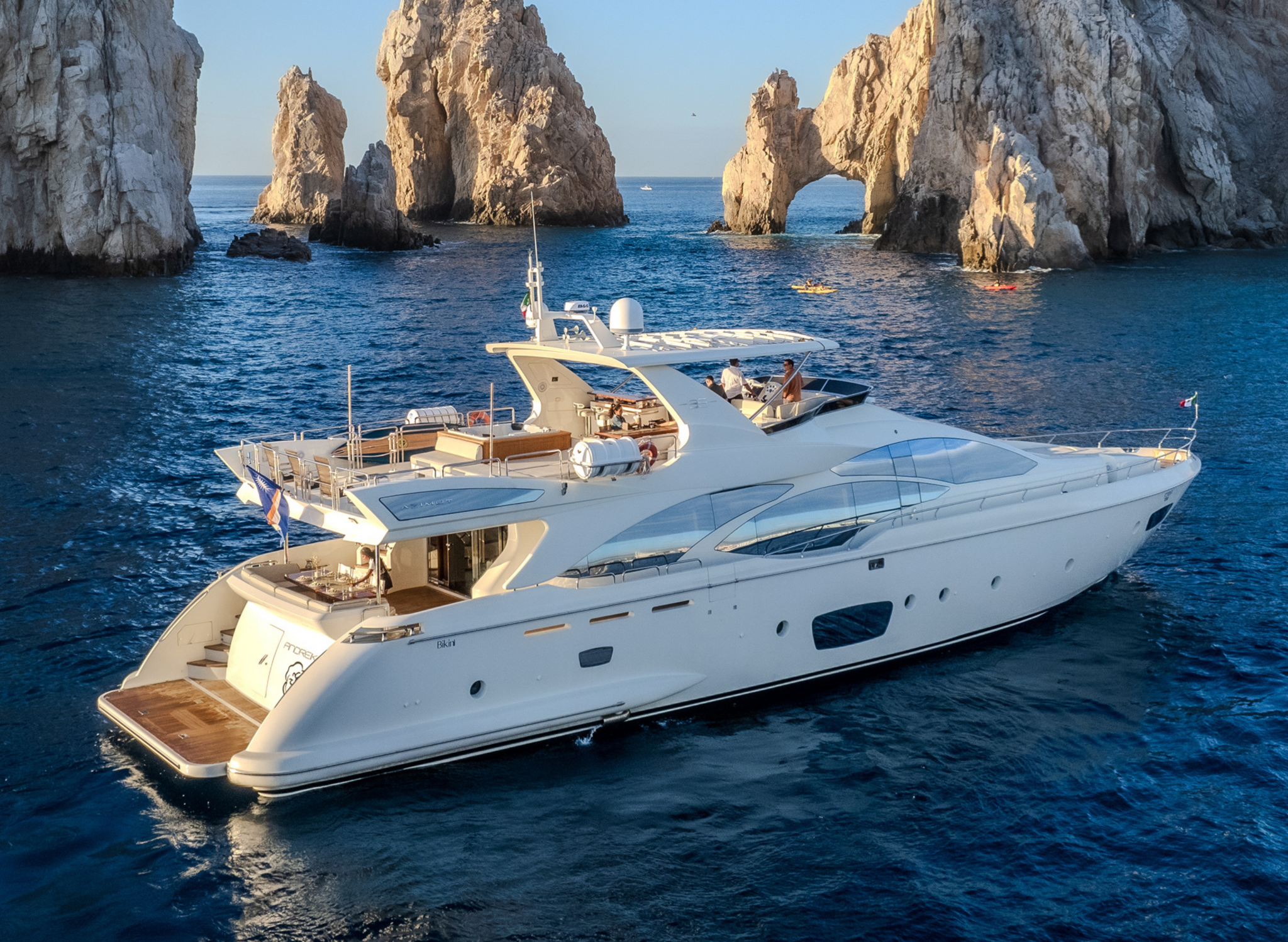 95-ft luxury yacht designed by Stefano Righini, offering a world-class experience. Features 4 cabins, spacious interiors, top finishes, onboard chef, and a jacuzzi on the upper deck. Outdoor areas include a sunbathing bow and bar—perfect for upscale day trips or extended charters.