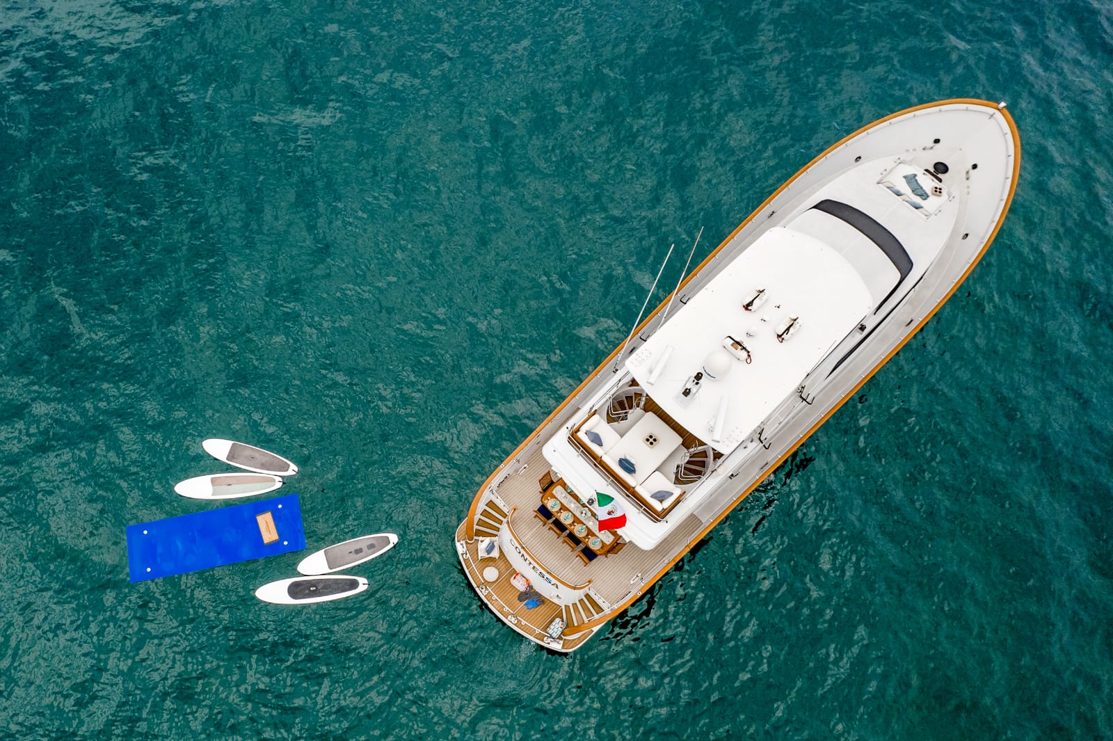 Includes multiple staterooms, sunbathing areas, water toys, and excellent stability for a комфортable, upscale experience at sea.