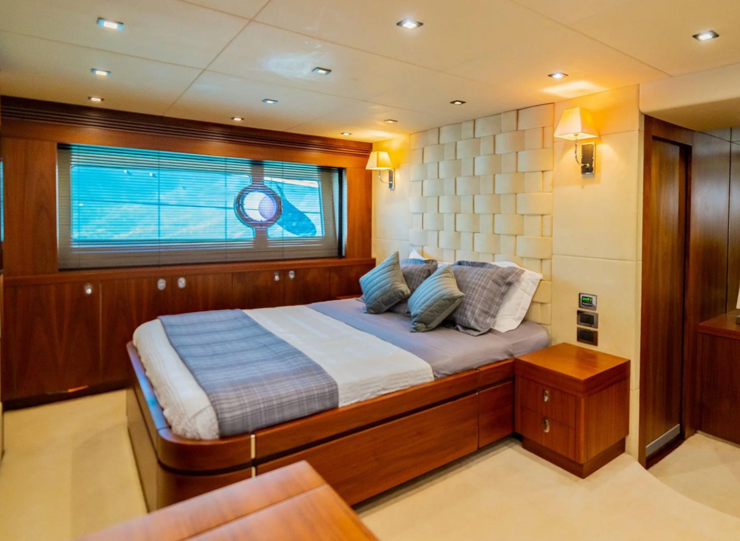 Luxury yacht with 4 cabins and 4 bathrooms, featuring advanced stabilizers and three spacious decks.