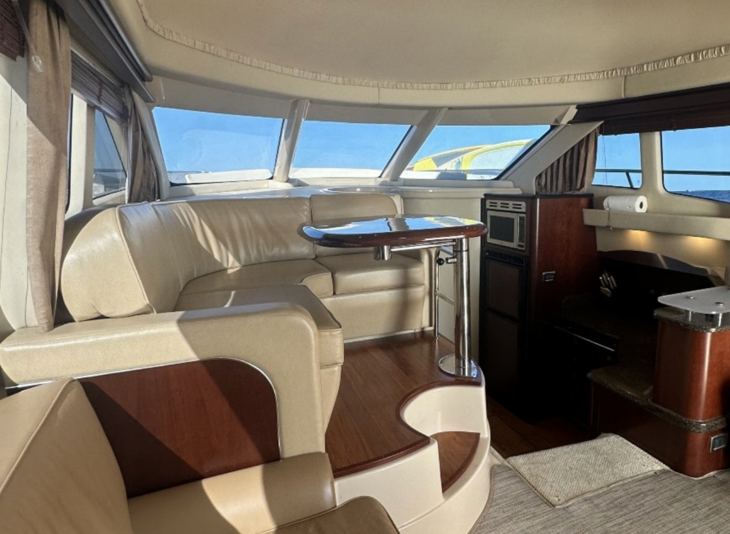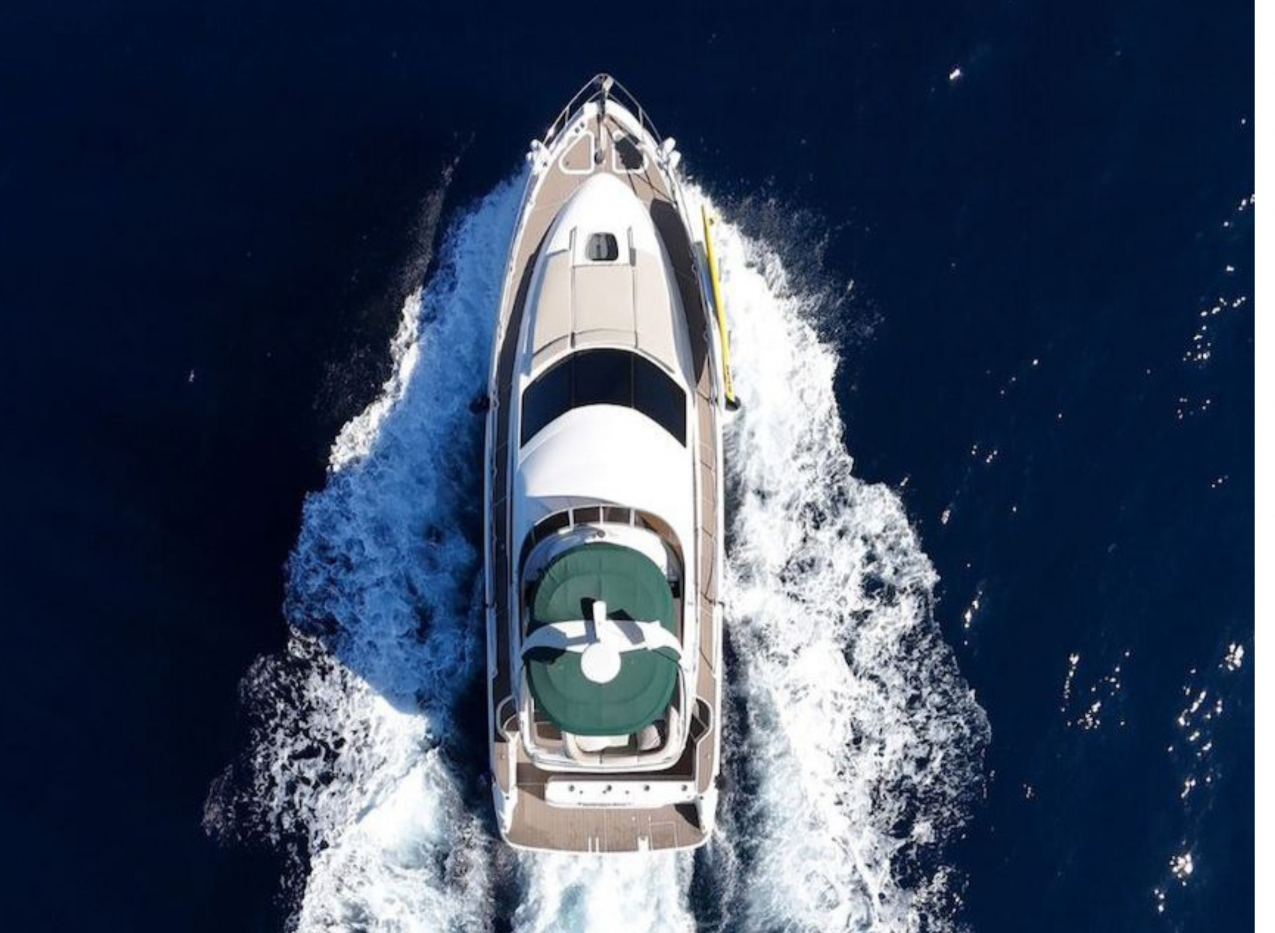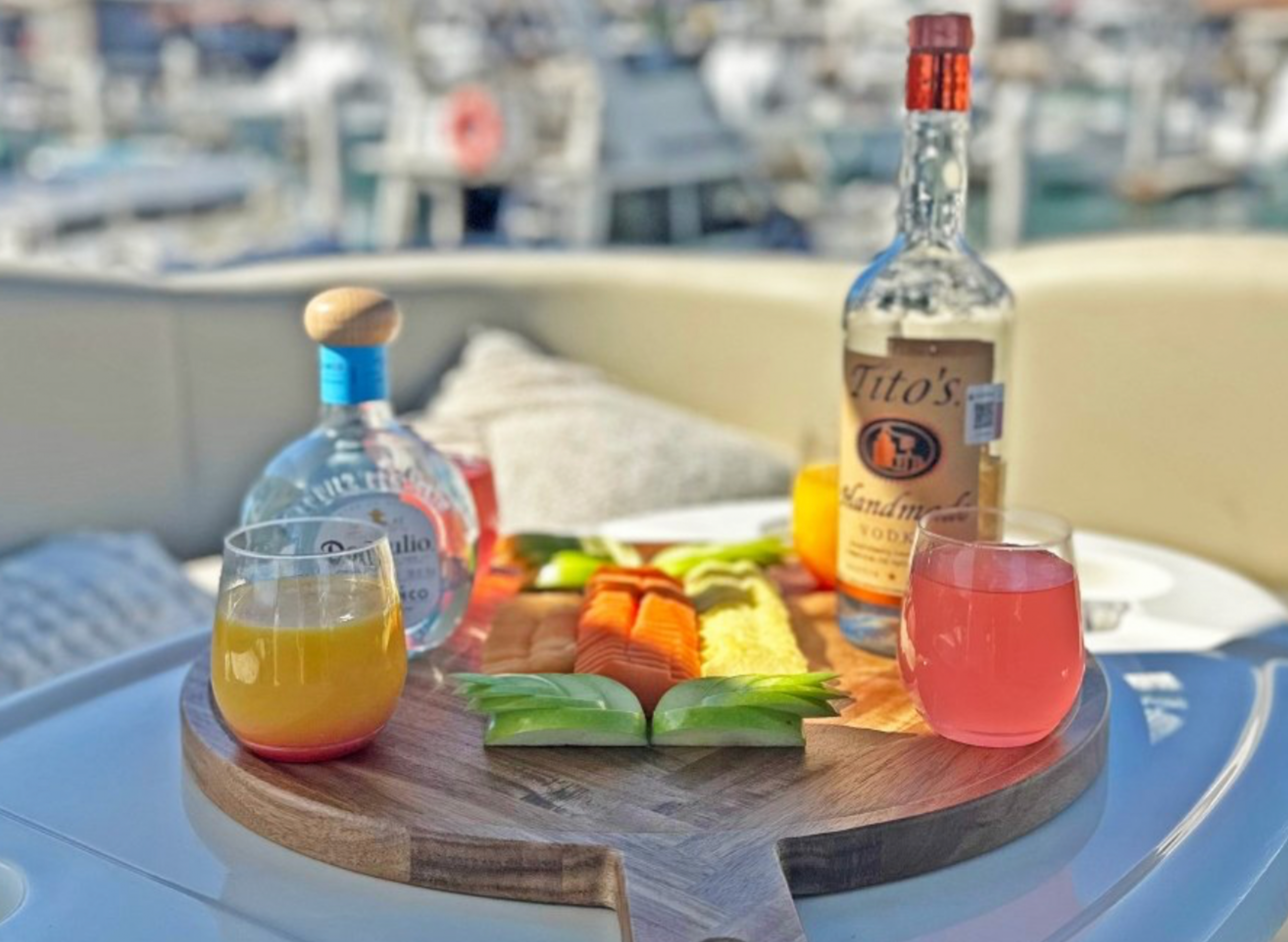 Up to 14 guests enjoy an all-inclusive luxury experience with unlimited open bar, restaurant-quality menu, fruit platter, fresh guacamole and salsas, snorkel gear, towels, and a large float mat.